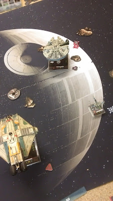 Last turn of the game saw a 1 Hull Chewbacca at range 1 of a 2 hull Y-wing (who was out of arc!) and range 3 of a 2 hull Dash! Lucky for me, Dash killed off Chewbacca... If he didn't Sam would of took that game! Wow it was close!